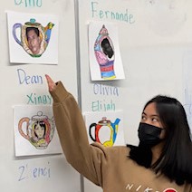 I first taught students about Roberto Lugo and exposed them to his elaborate pottery. Then, students designed 2-D teapots, vases, teacups and sneakers in his style but with their own “hidden heroes” highlighting their heritage as they developed their academic English skills. Students chose the winning art after listening to classmates give “elevator pitches” for their submissions. The pieces tell counter-narratives of grandparents, sisters, brothers, aunties. uncles and cultural celebrities. They honor those who have passed and those who are still alive. To my delight, some student “winners” were previously among the most disengaged students.
