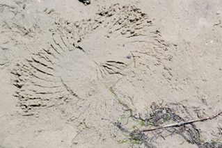 Next, I targeted Chesapeake Bay, which has been one of the most polluted waterways in the U.S., but has made great improvements over the last 40 years. I planned to visit the Brock Environmental Center run by the Chesapeake Bay Foundation, but unfortunately it was closed due to COVID. I decided to at least go walk their informational trail. (I hope to have my students create a walking trail with markers on our school grounds with a small seasonal creek and wetland.) I spotted a circular pattern on the sand by the shore where a turtle had visited.