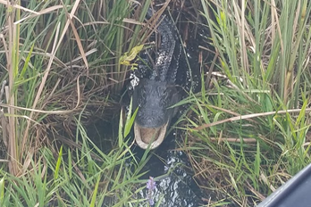 Our guide gave us an up close and personal visit with a momma alligator guarding her nest! The scary thing is: one minute you are just floating through this “River of Grass” on the airboat, and that is pretty much all you see… grass and mangrove and pond apple trees… next thing you know, you are 4 feet away from a hissing alligator! You can’t see them until you are right there!