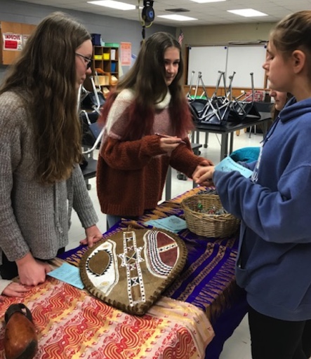 In addition to reading the novels, students had a unique opportunity to design a complete experience for our Open House guests. From designing the room layouts to determining who would greet guests, explain stops in the rooms, and take care of set up and clean up, students worked together to create something to be proud of! Originally, we had planned to work with 7th grade Language Arts and our EL teachers and students, but as our project was building, many other staff and students became part of the event. Our FACS teacher worked with students to design and sew the Syrian flags and to make the hummus, our band and chorus teachers volunteered to teach students the clave rhythm and how to use the percussion instruments, our library staff offered a selection of books that went along with our theme and 8th grade students provided book reviews to encourage others to read them, the families of our 8th graders made goodies to be sold at the bake sale, a School Board member volunteered to work with World Relief to collect school items and greet guests in the lobby, and countless others offered support to our students for our event.