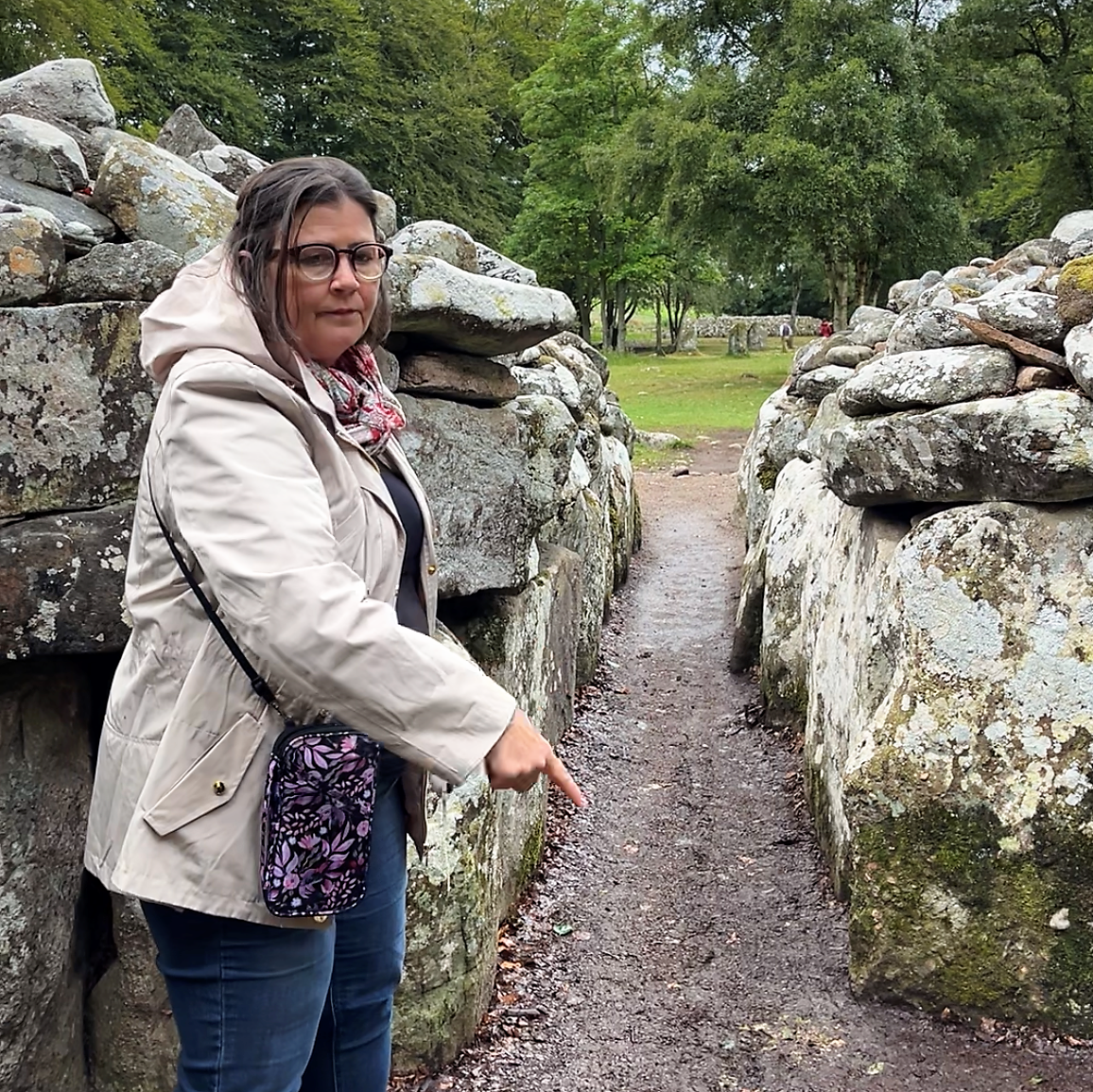 Her research included filming the sites for VR headsets, touring museums — such as the Archeology Museum of Dublin, where remains of “bog people” from AD 20 are on display — and interviewing docents. Jenifer participated in a workshop about the first villages of France at Paris’ Musée d’Archéologie Nationale in conjunction with annual European Archaeology Days and joined summer solstice celebrations at stone circles in Scotland.