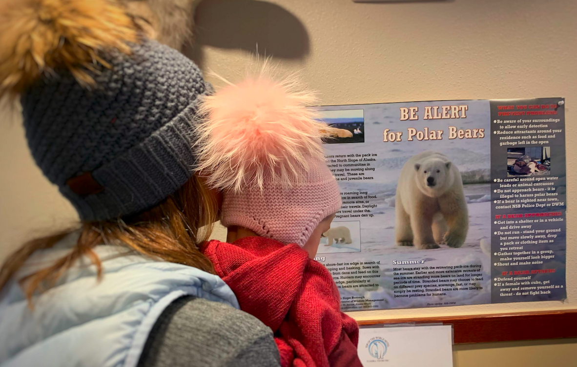 Polar Bear, Polar Bear, What do you See? We saw signage for polar bears, but only saw a black bear in real life. She was panting because it was too hot for her!